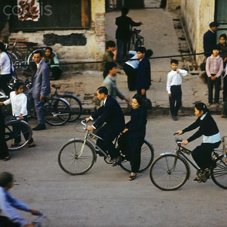 Xe đạp là phương tiện chuyên chở cũng như phương tiện di chuyển chính của người dân miền Bắc Việt Nam, cũng như người dân khu phố Khâm Thiên ở thủ đô Hà Nội, tháng 3/1973. (Ảnh: Werner Schulze/dpa/Corbis)