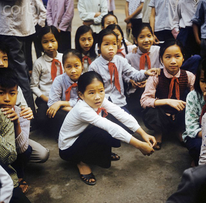 Các em nhỏ học sinh Hà Nội với khăn quàng đỏ trên vai, một biểu tượng của Đoàn thanh niên ở những nước CNXH. (Ảnh chụp năm 1973)