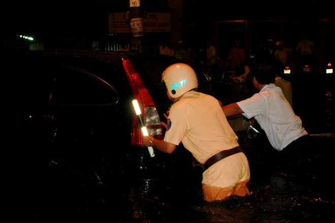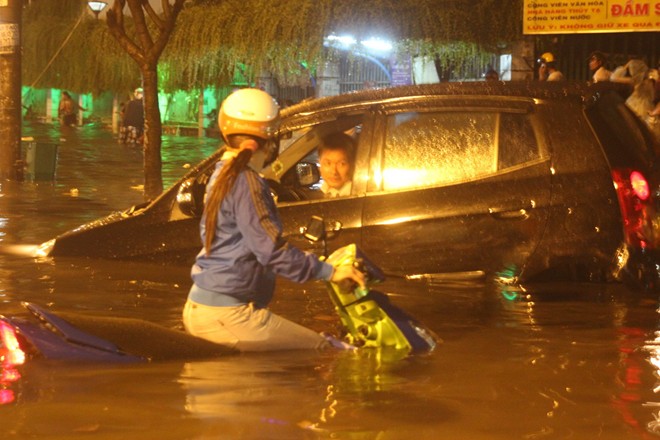 khỏi cảnh chết máy, nước dâng đến hết bánh xe.