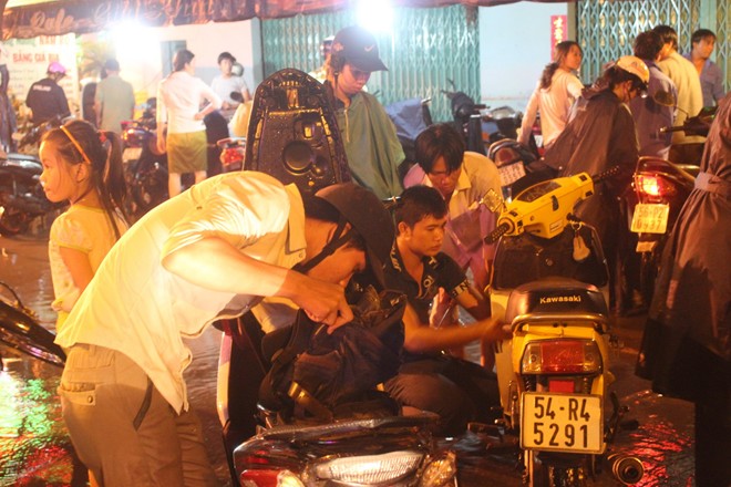 lúc học sinh tan trường nên nhiều phụ huynh phải bì bõm