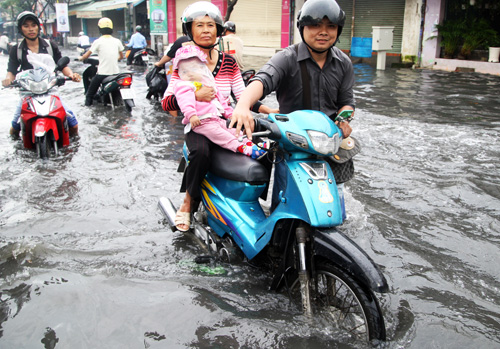 Trong khi đó, dù lường trước được tình hình là đường sẽ ngập nặng nên hai vợ chồng trẻ dùng ôtô đưa con đi học. "Tuy nhiên ôtô cũng bị chết máy giữa đường nên chúng tôi phải đón taxi cho con đến trường trên đường Lý Thường Kiệt để kịp giờ", người chồng cho hay.