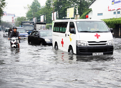 Khoảng 4h, cơn mưa lớn trên diện rộng đổ xuống TP HCM khiến nhiều tuyến đường tại TP HCM lại ngập nặng. Mọi sinh hoạt, đi lại, học tập, làm việc của người dân đều bị đảo lộn.