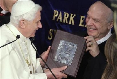 Đức Thánh Cha đã được chào mừng bởi Rabbi Arthur Schneier, 78 tuổi, người Áo và là người đã sống sót trong vụ tàn sát người Do Thái. Rabbi Arthur Schneier gọi cuộc viếng thăm của ngài là một cuộc viếng thăm lịch sử “một lời xác nhận cho sự vươn ra, thiện chí, và sự dấn thân nhằm tăng cường quan hệ Do Thái Giáo- Công Giáo”