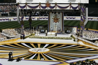 Sau buổi lễ cảm động sáng Chúa Nhật tại Trung Tâm Thương Mại Thế Giới, lúc 2:30 trưa Đức Thánh Cha đã cử hành thánh lễ tại sân vận động Yankee.