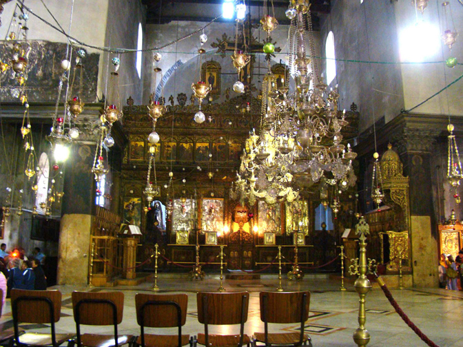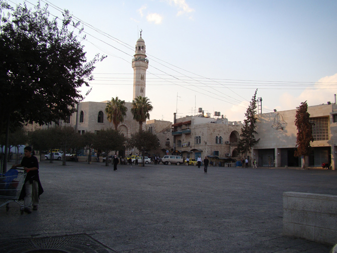 Phía trước Nhà Thờ Giáng Sinh là Quảng Trường Máng Cỏ với đền thờ Hồi giáo.