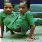 2 chị em xuất hiện trên India Today ngày 29/2/1996. 2 cô gái có thể đứng nhưng không thể đi, phải bò bằng tay và chân chính vì thế khán giả thường gọi họ là “Những cô gái người nhện”. Ông chú của họ đứng ra quản lý 2 người trong các chuyến đi biểu diễn, họ thường nằm trên giường và cho phép người xem quan sát và đến gần trò chuyện với mình. Ganga và Jamuna có 2 phiếu ăn nhưng chỉ ăn chung một khay, họ bỏ 2 phiếu khi đi bầu cử nhưng lại không được phép mở một tài khoản ngân hàng chung.