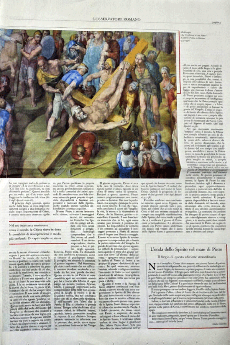 ngay bên trái hình của ngài ở trang bìa có hai nhan đề "La corsa Pietro - Cuộc bỏ chạy của Thánh Phêrô" và "Abbandonarsia Colui che Guida la Chiesa - Cuộc công hãm vị dẫn dắt Giáo Hội",