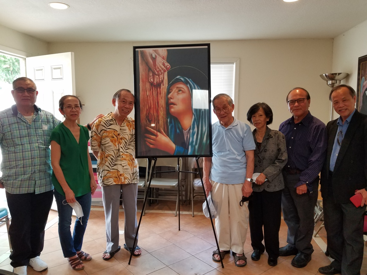 Ảnh chụp được Anh Hiển (Đội XI) chụp chiều Thứ Năm mùng 9/9/2021 tại Trung Tâm Công Giáo VN GP San Jose CA, ở phía bên phải (từ trái sang) Ảnh Mẹ Đồng Công là AC Ngọc Hoa. Xin cầu cho LH Maria Hoa!