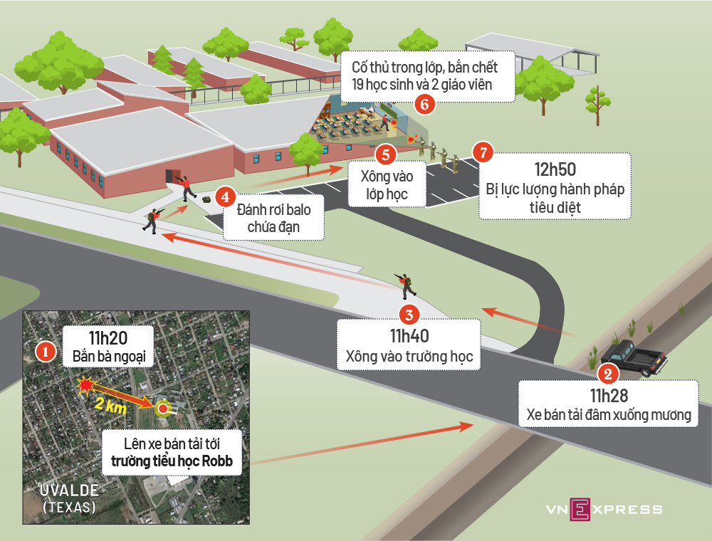 Hai giờ gây tội ác của kẻ xả súng trường tiểu học Mỹ