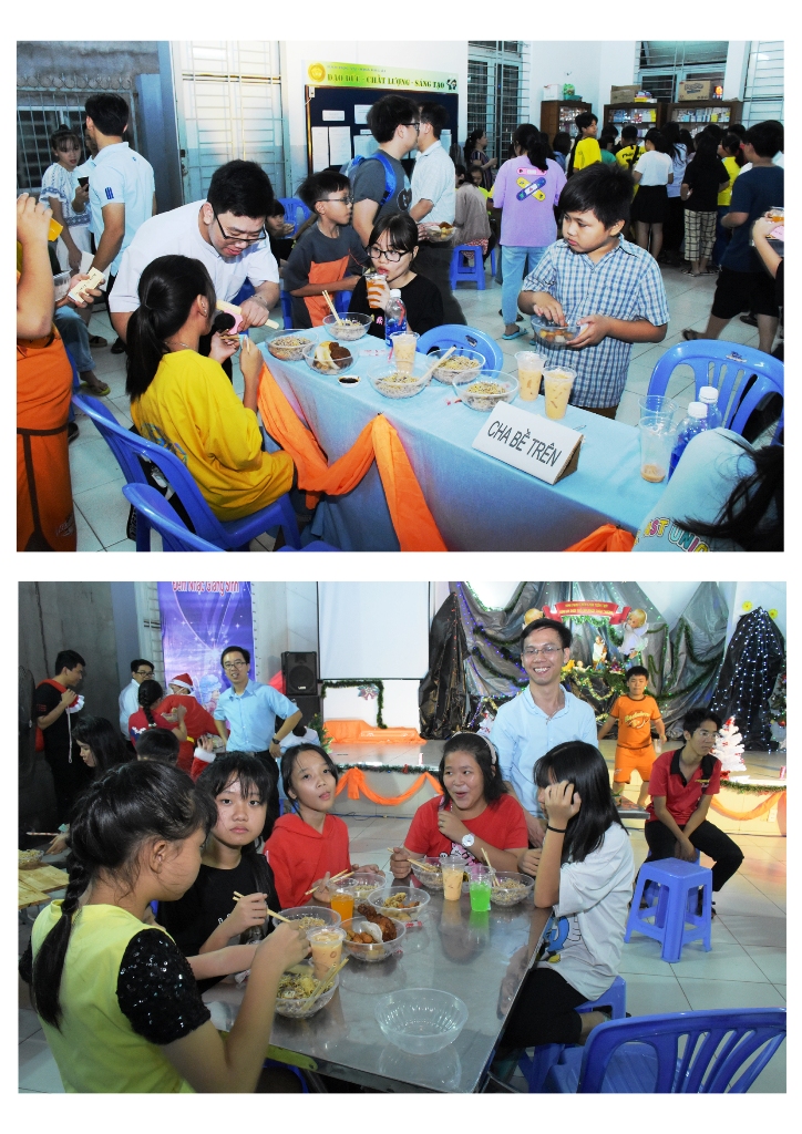 Giáng Sinh luôn luôn mang tới cho hết thảy mọi người, dù già trẻ lớn bé, dù trai gái, dù bạn thuộc tôn giáo nào, dù bạn giàu hay nghèo, dù bạn là người nơi thị thành nhộn nhịp hay là người nơi thôn giă điền viên. Hết thảy chúng ta đều mặc lấy một niềm vui lớn lao với những cung bậc cảm xúc khó tả, trong những ngày này. Hoà trong bầu không khí rộn ràng chào đón Giáng sinh đang về đầu ngơ mỗi gia đ́nh. Vào tối ngày 22 tháng 12 vừa qua, tại nhà Bác ái Ḍng Mẹ Chúa Cứu Chuộc đă diễn ra chương tŕnh “Hài Nhi Giê-su- Quà tặng t́nh yêu cho muôn dân” với sự tham gia của rất nhiều bạn trẻ là các học sinh đă từng học tại đây hoặc đang theo học và các em ở gần khu vực nhà Bác ái. Tất cả các em được tham gia vào đêm hội với những món quà tinh thần bổ ích cùng một bữa tiệc “buffet” thắm đượm t́nh tương thân tương ái. Chương tŕnh đă được bắt đầu lúc 18h00 với lời khai mạc của Anh Emanuel. M Vũ Đức Thành phụ trách. Sau đó, các bạn nhỏ cùng quư phụ huynh được thưởng thức những tiết mục cây nhà lá vườn do chính các em dàn dựng và biểu diễn với sự hỗ trợ của quư thầy trong ban giảng huấn tại nhà Bác Ái. Dù đây không phải là những tiết mục xuất sắc như những tiết mục trong một đêm diễn chuyên nghiệp. Nhưng những ǵ các bạn nhỏ ở đây thể hiện là tất cả tấm ḷng với bao nhiêu cố gắng vượt lên chính số phận và hoàn cảnh của mỗi em. Sự cố gắng để hoàn thành cách hoàn hảo nhất những bài hát, những điệu nhảy mang theo cả tấm chân t́nh và lời tri ân mà các em học sinh ở đây dành cho quư cha, quư thầy. Những người đă giúp cho các em có được một nơi học tập không những về kiến thức văn hoá mà c̣n là những kỹ năng sống, giúp các em trở thành người tốt, người có ích cho xă hội trong tương lai gần. Giường như với các bạn nhỏ học sinh th́ đây là đêm của các em. Đêm để các em vui hết ḿnh và quên đi hết những lo lắng thi cử học hành. Tối hôm nay chỉ có vui và vui, chỉ có những lời chúc mừng Giáng Sinh an lành, Noel hạnh phúc mà các em dành cho quư cha, quư thầy và dành cho nhau nữa. Những nụ cười như rạng rỡ hơn thường ngày, những lời nói ấm áp, nồng nàn hơn. Cùng với những tiết mục văn nghệ đầy ngẫu hứng là bàn tiệc thịnh soạn với rất nhiều những món ăn độc và lạ do chính các thầy tự tay nấu, đă được bày ra thịnh soạn. Ở đây mỗi em có thể ăn tuỳ ư, nhưng cần phải tuân thủ luật chơi, đă lấy đồ ăn xin dùng hết nếu không sẽ không được thưởng thức những món c̣n lại. Đây cũng là cách giúp các em biết trân trọng và yêu quư những ǵ được ban tặng, tránh lối sống lăng phí trong giới trẻ Việt Nam hiện nay. Một điểm đặc biệt trong đêm vui hôm nay là có rất rất nhiều những gương mặt học sinh mới. Những học sinh mới này hầu như là lần đầu được đến với Nhà Bác Ái. Các em đều có một điểm chung đó chính là sinh trưởng trong một gia đ́nh không tôn giáo hoặc các tôn giáo bạn. V́ thế mà khi được mời tới đây, được chứng kiến bầu không khí ấm áp trong một không gian ngập tràn tiếng cười và chan chứ t́nh người đă để lại trong ḷng các em những ấn tượng khó tả về Ngày lễ Noel của người Công Giáo. Để có được sự hiện diện của rất nhiều bạn trẻ là người không tôn giáo trong đêm nay là nhờ vào sự mạnh bạo của quư thầy đang dạy các lớp học tại đây. Sáng kiến này tuy không mới nhưng đây là lần đầu tiên nó được áp dụng tại nhà Bác ái. Với sự khuyến khích và cổ vũ của các thầy, mỗi học sinh đă từng học, đang học tại đây đă mạnh dạn mời thêm một hoặc hai người bạn không tôn giáo với ḿnh đến chúng vui đêm dạ hội nhà Bác ái. Quả thật điều này đă gây được những hiệu ứng rất tích cực trong ḷng tất cả mọi người dù Công giáo hay không tôn giáo. Em Nam ở khu vực Cầu Gió bay cho hay: “Em rất vui khi được bạn mời đi dự tiệc, và cũng vô cùng bất ngờ vơi những điều em được đón nhận tại đây.” C̣n đây là lời của em H học sinh lớp 7 là một phật tử nói: “Con thấy vô cùng thú vị, vui hết biết luôn, không ngờ lễ Noel của bạn con vui quá thầy ơi!” Và c̣n nhiều những câu nói thú vị và ngọt ngào khác các bạn nhỏ dành để cảm ơn quư cha quư thầy. ước vọng tất cả những nỗ lực của quư cha quư thầy tại nhà Bác ái Đồng Công sẽ được Chúa chúc lành. Lúc 8h tối cùng ngày lời chúc mừng chúc mừng Đại lễ Giáng sinh sắp tới một lần nữa được vang lên và đây cũng là những lời kết thúc và khép lại một đêm vui Giáng Sinh vô đáng nhớ trong ḷng các bạn nhỏ được may mắn có mặt tại nhà Bác Ái Đồng Công. Các em ra về trong tiếc nuối lẫn hy vọng sẽ có dịp được trở lại, được tham gia nhiều hơn vào những ngày hội ư nghĩa và lành mạnh như thế này. Hy vọng rằng đêm hội ngắn ngủi này sẽ được Chúa chúc phúc và làm nảy n