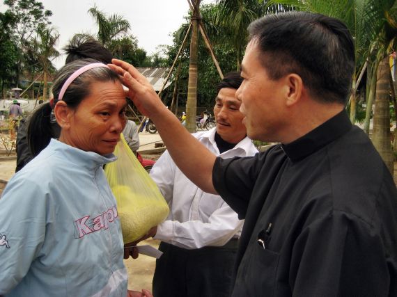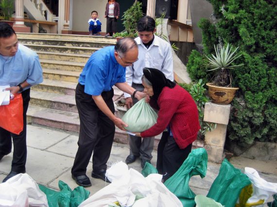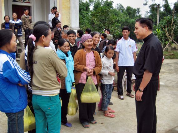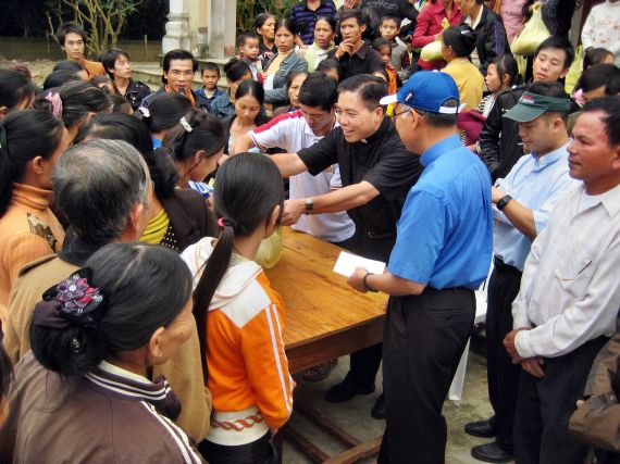 Cha Trưởng Ban Bác Ái tại Việt Nam đang trao quà |