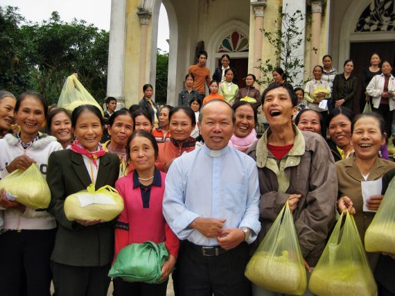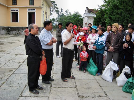 Cha xứ Trang Nứa cám ơn phái đoàn Bác ái |