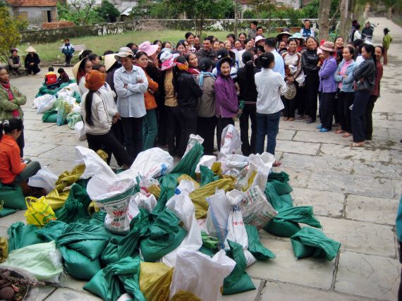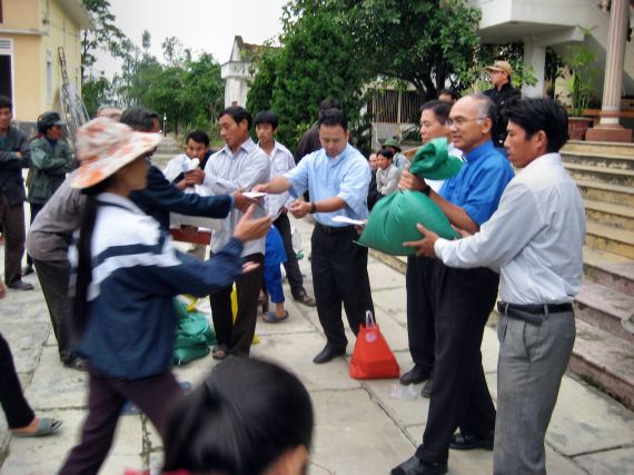 Phẩm vật cứu trợ : gạo và tiền mặt |