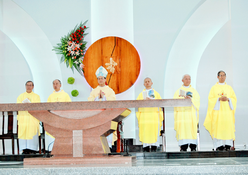 Kính thưa Đức Cha Đaminh Nguyễn Chu Trinh, giám mục giáo phận Xuân Lộc, Đức Cha Tôma Vũ Đình Hiệu, giám mục phụ tá giáo phận Xuân Lộc, quý Đức Ông, quý các Bề Trên, quý Cha, quý tu sĩ nam nữ, quý ân nhân, quý khách và toàn thể cộng đoàn. Hôm nay là một ngày hân hoan vui mừng và đáng ghi nhớ cho toàn thể giáo dân Giáo xứ Phú Lý. Mọi người hân hoan vui mừng và hạnh phúc vì có một ngôi nhà thờ mới khang trang, rộng lớn làm nơi cử hành phụng vụ và sinh hoạt mục vụ giáo xứ. Việc hoàn thành ngôi nhà thờ mới có thể được coi là dấu chứng, là biểu hiện cụ thể tình thương, sự hiệp nhất của cộng đoàn, cũng như niềm tin sống động và lòng quảng đại của các vị ân nhân xa gần và của từng con dân giáo xứ Phú Lý dâng lên Thiên Chúa và Mẹ Giáo Hội. Niềm vui này còn được nhân lên gấp bội, khi mọi người nhìn lại và nhận ra sự hiện diện đầy yêu thương của Thiên Chúa dọc dài trên lịch sử của cộng đoàn và của từng thành viên trong giáo xứ Phú Lý. Đứng trước những hồng ân trọng đại Chúa đã ban cho giáo xứ, cộng đoàn giáo xứ chúng con không thể không dâng lời tạ ơn Thiên Chúa. Tạ ơn Thiên Chúa, vì qua bao thăng trầm thử thách, Thiên Chúa luôn bảo bọc giáo xứ trong vòng tay đầy yêu thương của Ngài. Sự hiện diện của Thiên Chúa hết sức ân cần và sống động, để từng bước dìu đưa chúng ta đi qua mọi gian khó và thực hiện tất cả những điều tốt đẹp nhất cho cộng đoàn giáo xứ. Tình yêu của Thiên Chúa biểu thị cụ thể và sống động không chỉ qua ngôi nhà thờ khang trang bên ngoài mà còn biết bao đền thờ tâm hồn xinh đẹp bên trong. Cùng với tâm tình tạ ơn Thiên Chúa, giáo xứ chúng con dâng lời tri ân Hai Đức Cha, Đức ông Tổng Đại Diện, Cha Bề Trên - Quý Cha - Quý Thầy Dòng Đồng Công, Quý Cha, Quý tu sĩ nam nữ, quý ân nhân xa gần và tất cả Quý ông bà và anh chị em bằng vật chất lẫn tinh thần, bằng cách này cách khác đã âm thầm nâng đỡ chúng con từ khởi sự cho đến hoàn thành. Xin cho lời tạ ơn không chỉ dâng cao và dừng lại trong ngày trọng đại hôm nay, mà được nối dài, được đổ đầy vào cuộc sống từng ngày, để biến đổi mỗi chúng ta thành khúc ca tạ ơn sống động dâng lên Thiên Chúa và trao tặng mọi người. Chớ gì ngôi nhà thờ từ nay sẽ luôn là con tim, là trung tâm, là mái nhà chung của giáo xứ, nơi tập họp Dân Chúa quanh bàn tiệc Lời Chúa và Thánh Thể, để được nuôi dưỡng trong Đức Tin và nhất là vươn tới Đức Ai viên mãn, làm nên những đền thờ tâm hồn xinh đẹp của Thánh Thần, nơi Thiên Chúa hiện diện và yêu thương. Nhà thờ được xây dựng làm nơi tập họp Dân Chúa và cử hành các mầu nhiệm thánh, nên nhà thờ trở thành nhà của Thiên Chúa và do đó, theo truyền thống cổ kính của Hội Thánh, cần phải cung hiến cho Thiên Chúa theo nghi lễ long trọng như giáo luật quy định. Việc cung hiến ấy sẽ được thực hiện trong thánh lễ hôm nay. Kính thưa Quý Vị Hôm nay cộng đoàn dân Chúa về đây cùng với Đức Giám Mục phụ tá giáo phận, quý Cha, quý Tu sĩ nam nữ, dâng lên Thiên Chúa lễ tạ ơn và xin Thiên Chúa thánh hiến chúc phúc cho bàn thờ và thánh đường giáo xứ Phú Lý. Bầu khí của ngày lễ hôm nay tràn ngập hân hoan, vì không những giáo xứ Phú Lý có được ngôi nhà thờ mới dâng kính Thiên Chúa, mà trong tình hiệp thông với quý Cha, quý An Nhân và Quý Khách gần xa. Thế nên tâm tình của ngày hôm nay là tâm tình tạ ơn của toàn thể giáo xứ như những người con dâng lên Thiên Chúa, bởi vì: “Đấng Toàn Năng đã làm cho tôi những điều trọng đại, Danh Ngài thật chí thánh chí tôn” (Lc 1,49). Và ngày lễ hôm nay, một biến cố trọng đại, một điểm dừng chân quan trọng trên hành trình phát triển của giáo xứ. Xin được cảm tạ hồng ân Thiên Chúa đã ban và có dịp để nhìn lại chặng đường mà giáo xứ đã hình thành và trải qua. Giáo Xứ Phú Lý chúng con thuộc Giáo Hạt Phú Thịnh, Giáo Phận Xuân Lộc. Thuộc chiến khu Đ nơi vùng sâu, vùng xa gồm hai xã: Mã Đà và Phú Lý, huyện Vĩnh Cữu, tỉnh Đồng Nai. Là vùng kinh tế mới, năm 1978 dân các miền trên đất nước về đây lập nghiệp. Nơi đây trước chỉ có một số ít đồng bào dân tộc Châu Ro, hiện nay với 15.000 dân cư, trong đó Giáo Xứ chúng con có khoảng 4.000 giáo dân sống rải rác dài gần 40 Km. Nguyên Giáo Xứ Phú Lý chúng con, năm 1978 là giáo họ Vĩnh An, hạt Túc Trưng. Sau khi lòng hồ Trị An ngập, năm 1978 Giáo Họ được chuyển sang ấp Cây Cầy, xã Phú Lý và dựng một nhà nguyện bằng cây rừng, mái lợp tranh. Sau một thời gian, Nhà Nguyện đã bị gió làm sập hoàn toàn, tượng ảnh cũng bị tan vỡ. Đến năm 1989, Nhà Nguyện được chuyển về ấp Bàu Phụng, xã Phú Lý. Nhà Nguyện được xây dựng lại bằng cây tấp ván, sau thời gian ván tấp bị mục và được tu sửa lại bằng gạch xây chèn cột. Trải dài 20 năm qua, nay ngôi Thánh Đường đã hoàn toàn xuống cấp, những đầu kèo cột đ