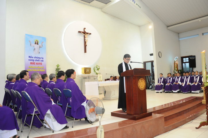 Cha Tổng Phục Vụ nói những lời sau cùng trước linh cửu Thầy Gioan Maria. |