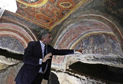 Các hình tượng cổ nhất về các tông đồ của Chúa Giêsu đã được phát hiện tại một hầm mộ gần Đền thờ Thánh Phaolô tại Rôma. Niên đại từ cuối thế kỷ IV, các hình ảnh có mặt đầy đủ mô tả 12 tông đồ của Chúa Giêsu – thánh Phêrô, thánh Anrê và thánh Gioan – kể cả thánh Phaolô, người trở thành tông đồ sau khi Chúa Giêsu chịu chết. Tòa thánh thông báo phát hiện hình thánh Phaolô hồi tháng Sáu năm ngoái để đánh dấu kết thúc năm thánh Phaolô. Nhưng chân dung này là một phần trong bích họa lớn mô tả đủ mặt cả 3 tông đồ khác. Ở trên trần một mộ của một phụ nữ quý tộc trong hầm mộ thánh Tecla, 4 chân dung hình tròn, đường kính khoảng 50 cm, được an táng dưới các lớp calcium carbonate trắng do ẩm ướt và thiếu không khí. Barbara Mazzei, trưởng dự án tu sửa 2 năm, nói: “Dùng kỹ thuật laser mới, chúng tôi đốt một số trầm tích calcium trắng mà không làm hư hại màu sắc khác lạ của các bích họa”. Mazzei cho biết rằng nhờ tia laser tác dụng như “dao mổ quang học”, hình các tông đồ hiện rõ đầy đủ chi tiết, cho thấy việc sùng kính các tông đồ có trong Kitô giáo từ buổi sơ khai. Thật vậy, bộ râu trắng dài và khuôn mặt vuông của thánh Phêrô, và nét nhăn trên trán thánh Phaolô có thể là tiêu chuẩn để miêu tả các tông đồ. Fabrizio Bisconti, viên quản lý cổ vật của các hầm mộ, được Ủy ban Giáo hoàng về Cổ vật thánh duy trì. Bisconti cho biết: “Các bức họa thánh Anrê và thánh Gioan chắc chắn là cổ nhất. Có một số biểu hiện cổ hơn về thánh Phêrô có niên đại từ giữa thế kỷ IV, nhưng đây là lần đầu tiên thánh tông đồ này không được thấy trong một nhóm mà có hình mặt đầy đủ”. Đo được khoảng 2 m cả ngang và dọc, cá bích họa cũng mô tả một phụ nữ quý tộc có đồ trang sức và con gái của phụ nữ này. Bisconti nói: “Phụ nữ này có thể là một trong các phụ nữ quý tộc đã trở lại đạo hồi cuối thế kỷ IV”. |