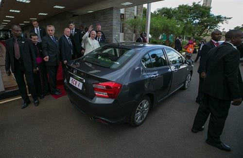 Đức Phanxicô, người từng bỏ đi nhiều thứ sang trọng thâm căn của Vatican, đã không dùng chiếc xe chống đạn như của tổng thống Uhuru Kenyatta và đoàn tùy tủng của ông.